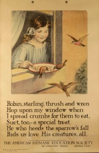 “Feeding the Birds” poster published by the American Humane Education Society featuring image and text provided by the National Association for Child Welfare. c.1921. Collection of Robert Penney.
