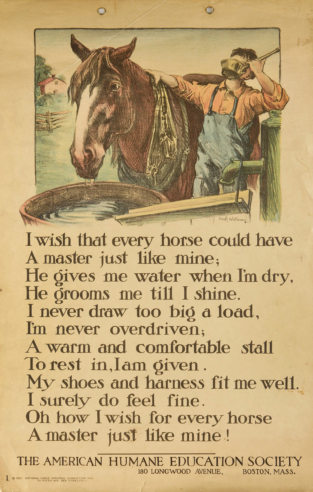 Poster published by the American Humane Education Society featuring image and text provided by the National Association for Child Welfare. c.1921. Collection of Robert Penney.