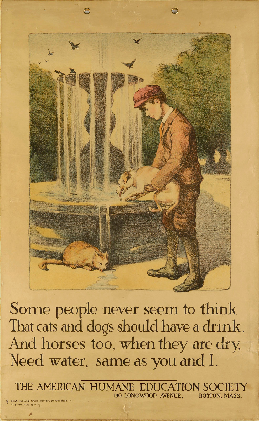 In the summer of 1921 the American Humane Education Society began selling a set of six colour lithograph prints received from the New York-based National Child Welfare Association. The protection of children and animals was often linked in the time period explored by this exhibition, so this collaboration was very much a part of the broader culture of Humane Education during this era.
