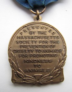 Early 20th century medal from the Massachusetts Society for the Prevention of Cruelty to Animals, front. Collection of MSPCA Angell.
